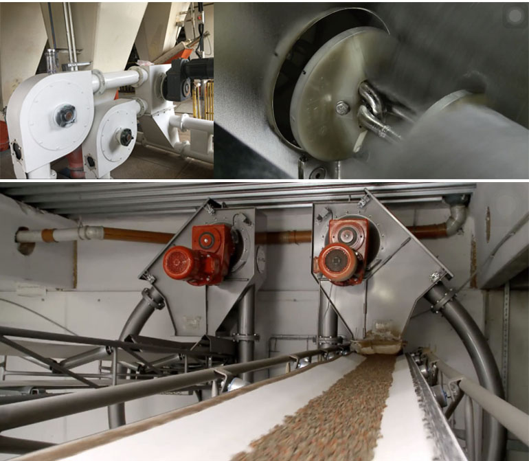 5) 输送原料沿着管子在两个盘片中间平滑向前输送,基本上没有摩擦,所以物料破损少,缓慢的弯道输送使很少的物料会产生破碎;