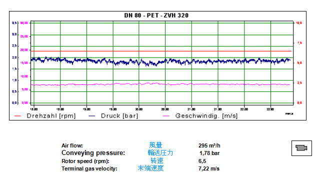 采用正压气源作为输送介质,物料以较低速度、沙丘状态、流态化或团聚状态在管道中输送的方式称为正压密相输送。一般采用的气源为空气压缩机,也有采用罗茨风机。